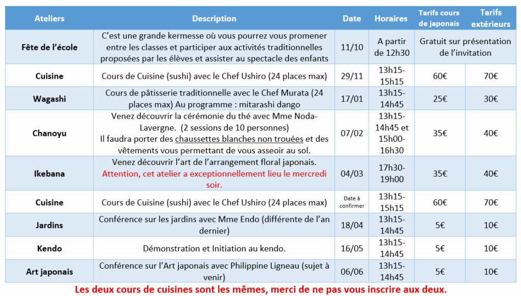 Les élèves inscrits aux cours de japonais bénéficient d’une réduction.